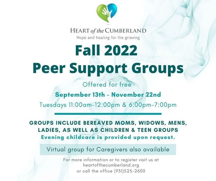 Fall 2022 Peer Support Groups Tuesday, September 13, 2022 11:00 AM Tuesday, November 22, 2022 7:00 PM Google Calendar ICS