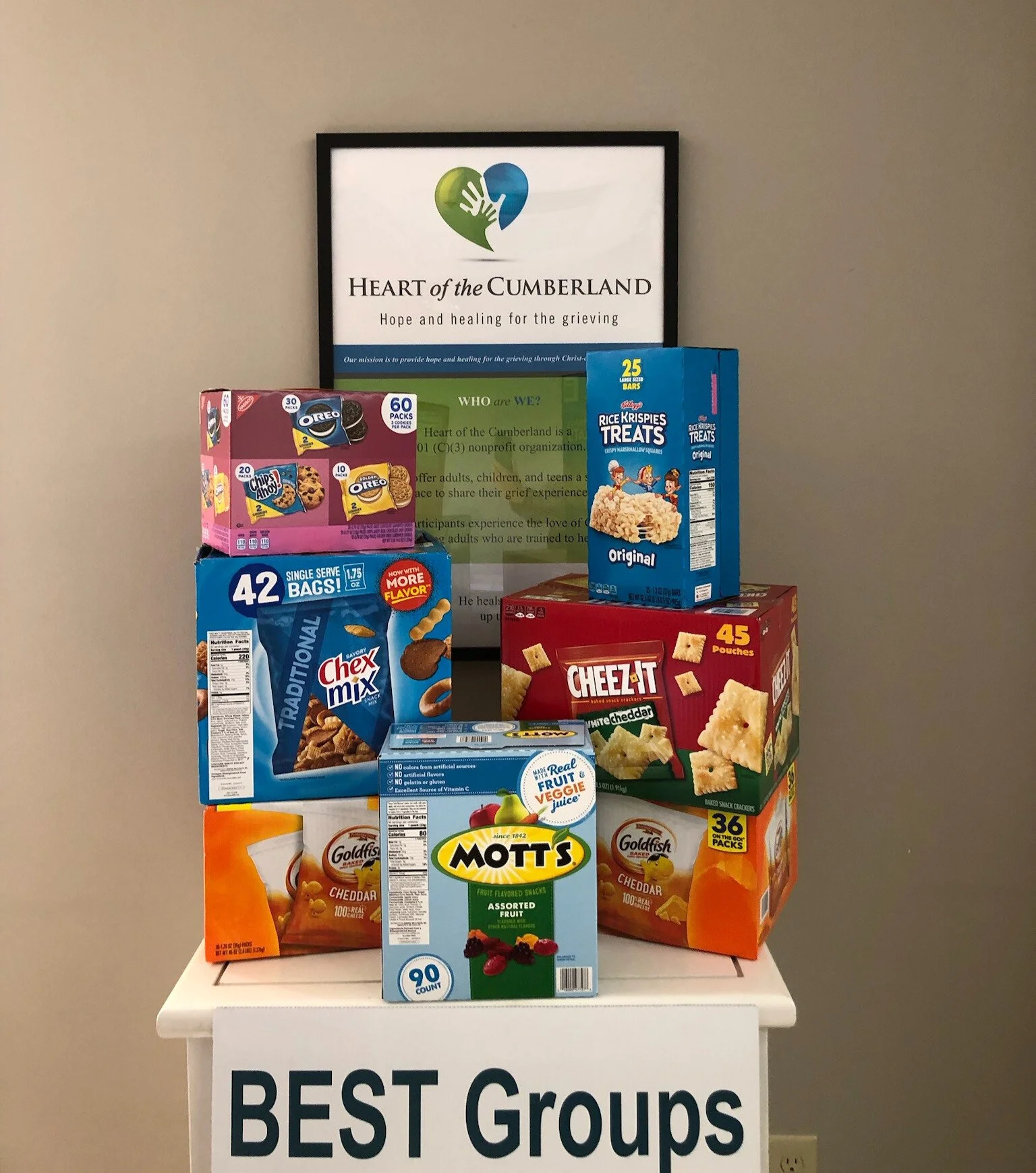 Your generosity helps us provide nourishing snacks for over 500 students in our BEST Groups school program on a weekly basis. Help us continue to give to these courageous students navigating loss by choosing items from our Amazon Snack Wishlist below. No act of kindness is too small. Every item you give helps us care for students both physically and emotionally each week.